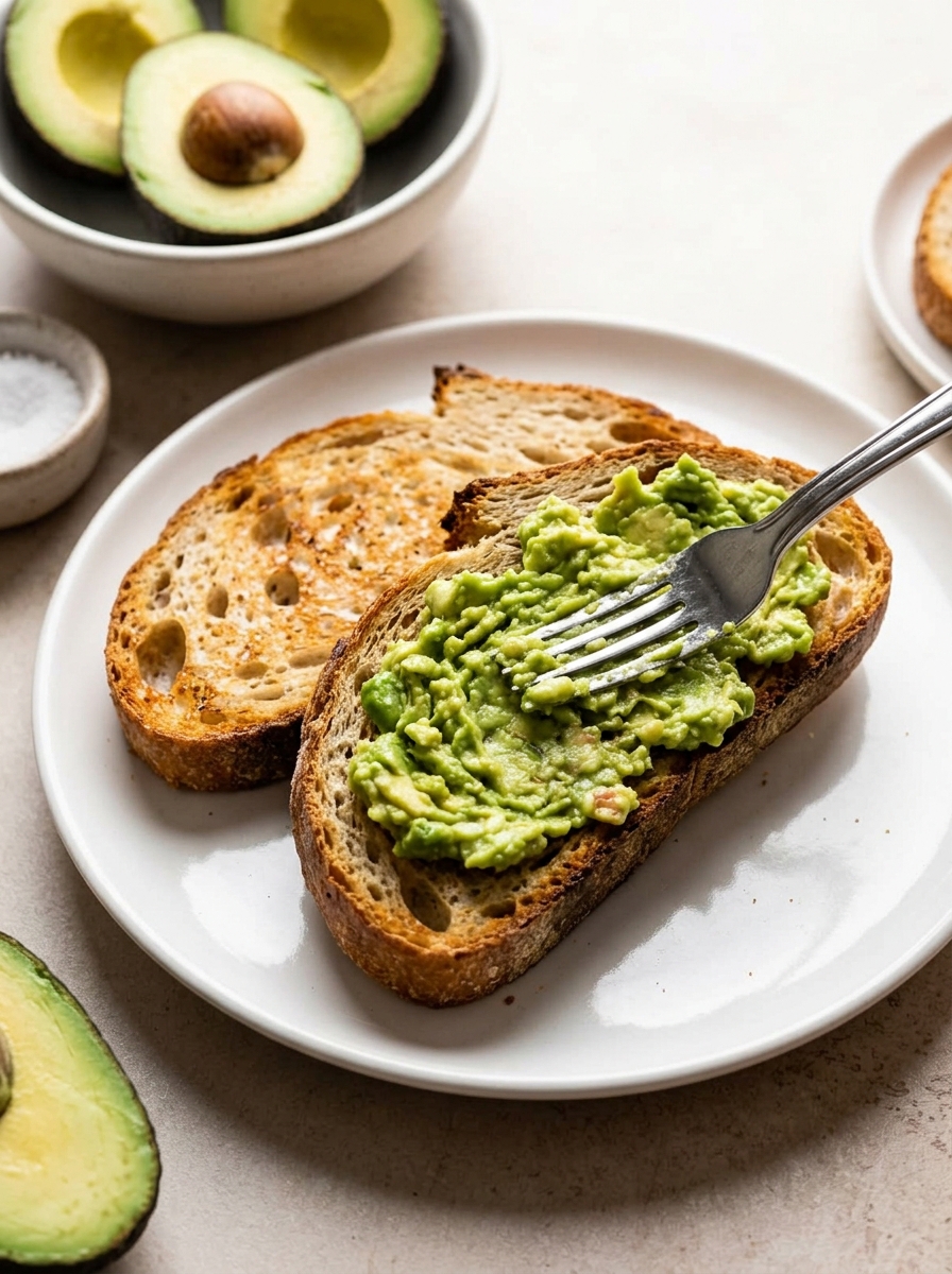 Rosta brödet och förbered avokado (4 minuter)